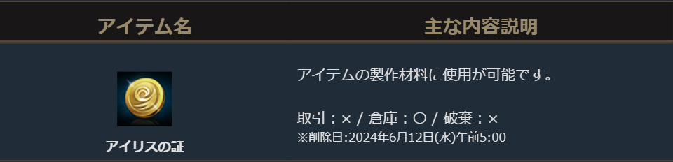 ※一部アイテムは未使用の場合、一定期間が経過すると自動で削除されます。詳しくは各アイテムの詳細をご確認ください。
