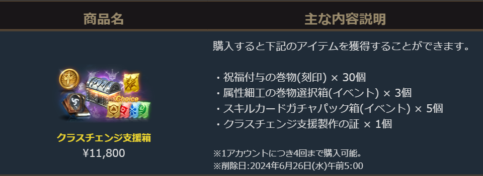クラスチェンジ後の再度の武器強化に役立つパッケージとなっております。
