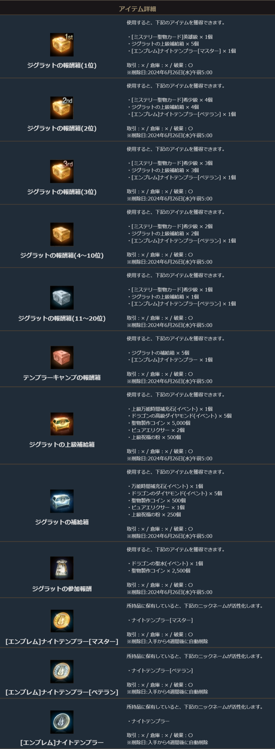 ※ジグラット退場後、各サーバー内で郵便で受け取る事ができます。