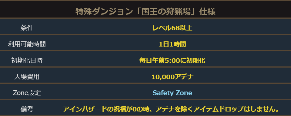 国王の狩猟場はイベント期間中、レベル68以上のキャラクターで毎日1時間利用することができます。