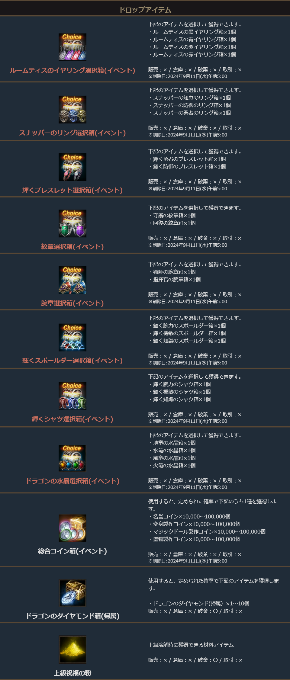 ※一部アイテムが期間終了後も未使用の場合、一定期間が経過すると自動で削除されます。詳しくは各アイテムの詳細をご確認ください。