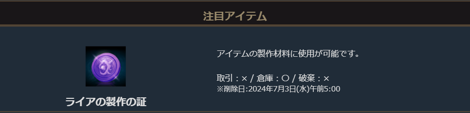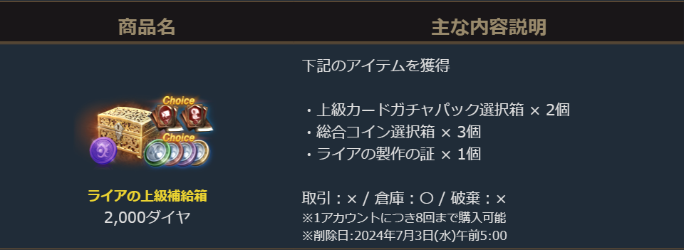 2024年6月19日より販売を開始しました「ライアの上級補給箱」のご案内を申し上げます。