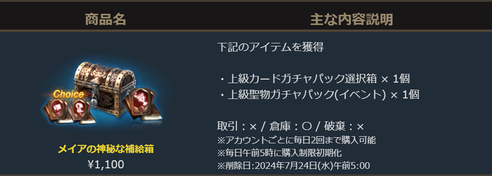 2024年6月26日より販売を開始しました「メイアの神秘な補給箱」のご案内を申し上げます。