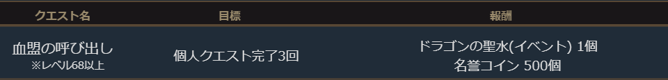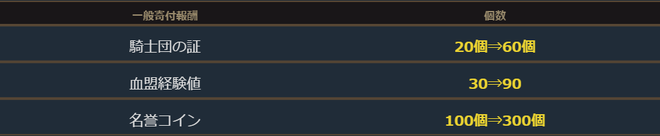 また、血盟クエストの下記基本報酬量が通常時の3倍になります。
