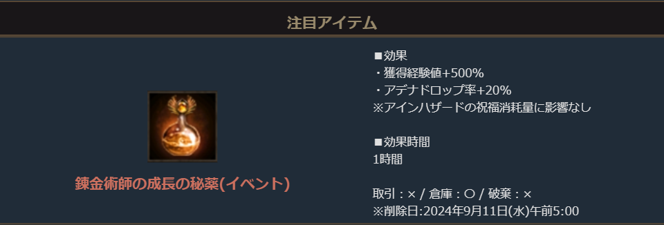 6月26日限定で、Lv68以上のキャラクターを保持したアカウントの郵便に「錬金術の成長の秘薬(イベント)」3個が贈られます。