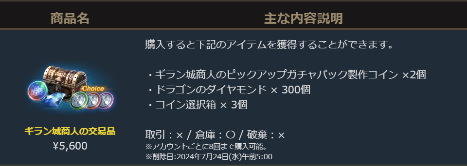 2024年7月3日より販売を開始しました「ギラン城商人の交易品」のご案内を申し上げます。