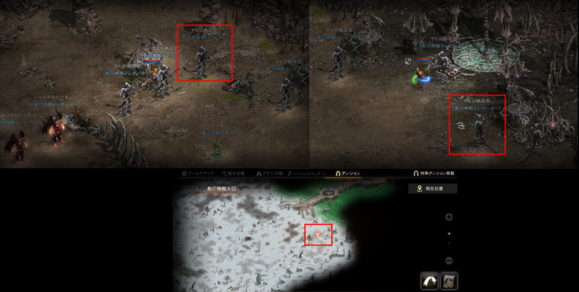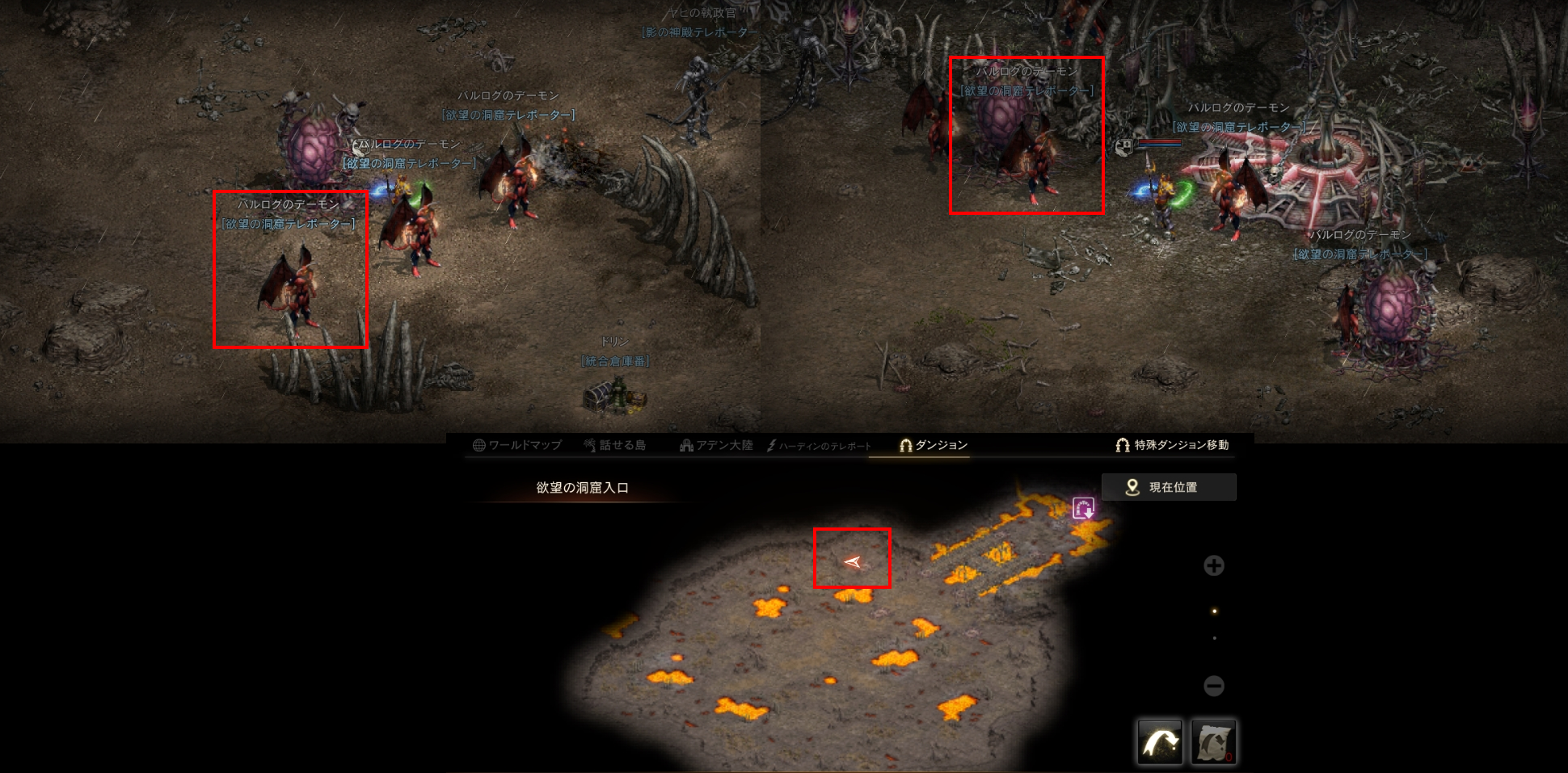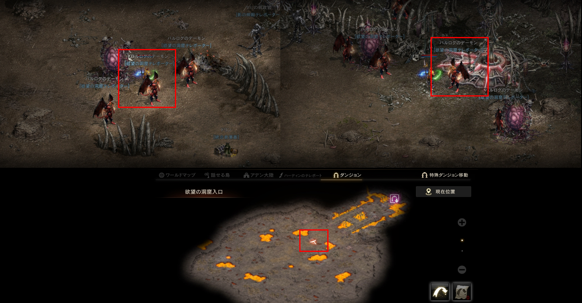 魔族の地にいる「欲望の洞窟テレポーター」「影の神殿テレポーター」を利用した際のテレポート先の位置調整を以下の通り行いました。