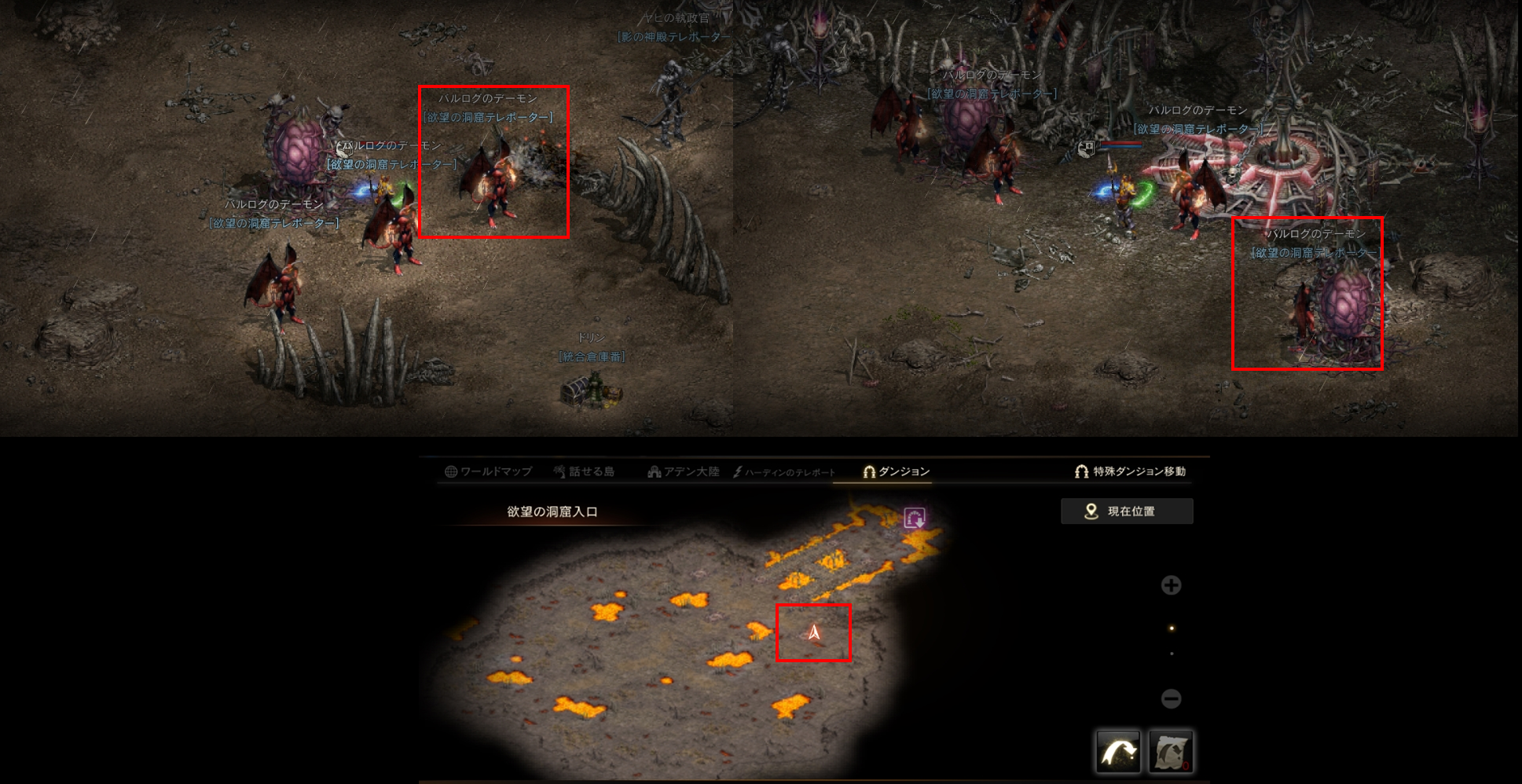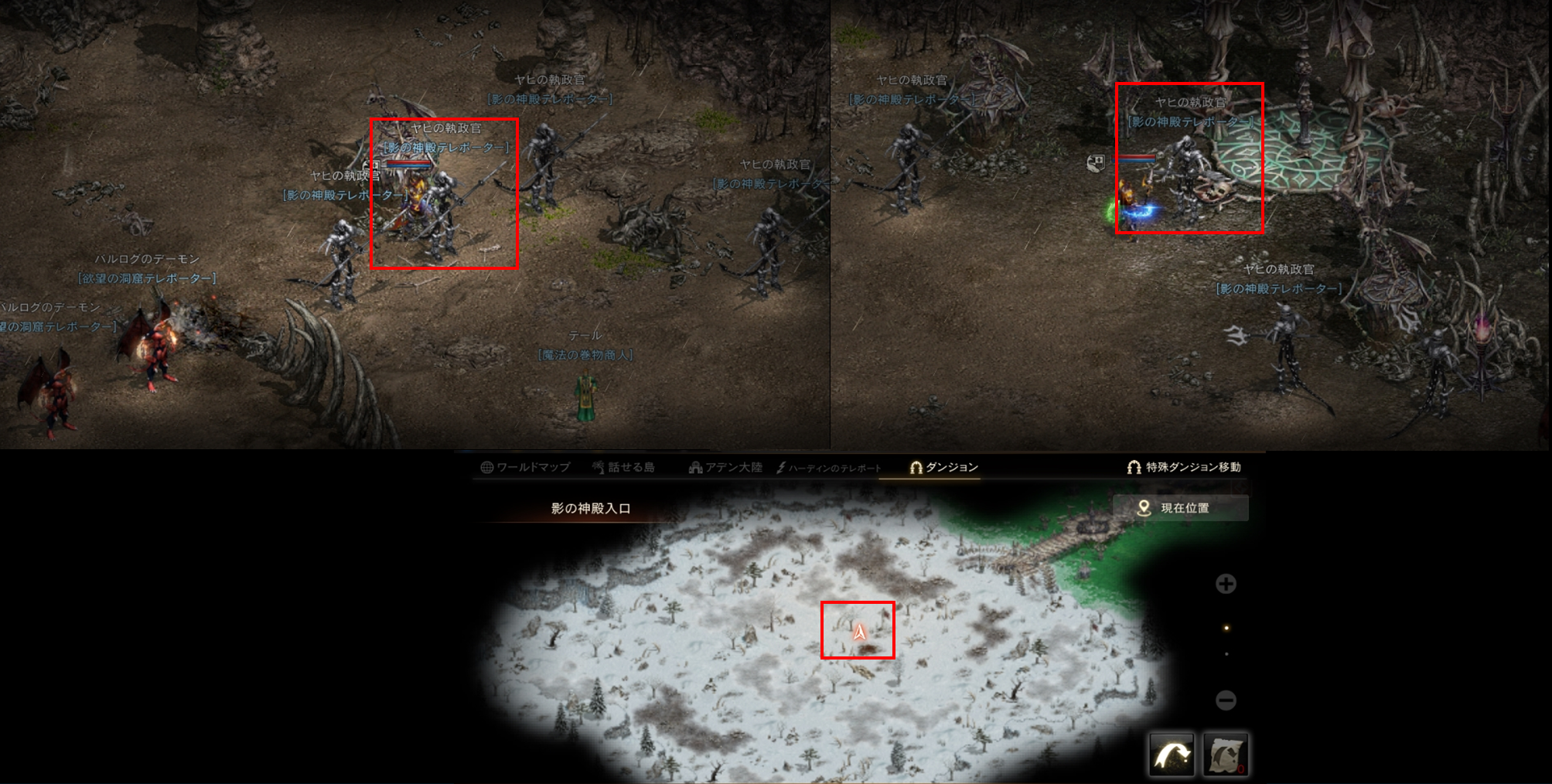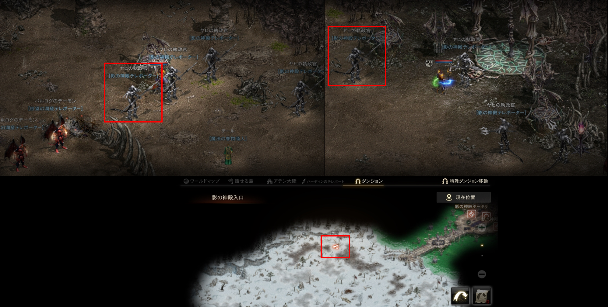 魔族の地にいる「欲望の洞窟テレポーター」「影の神殿テレポーター」を利用した際のテレポート先の位置調整を以下の通り行いました。