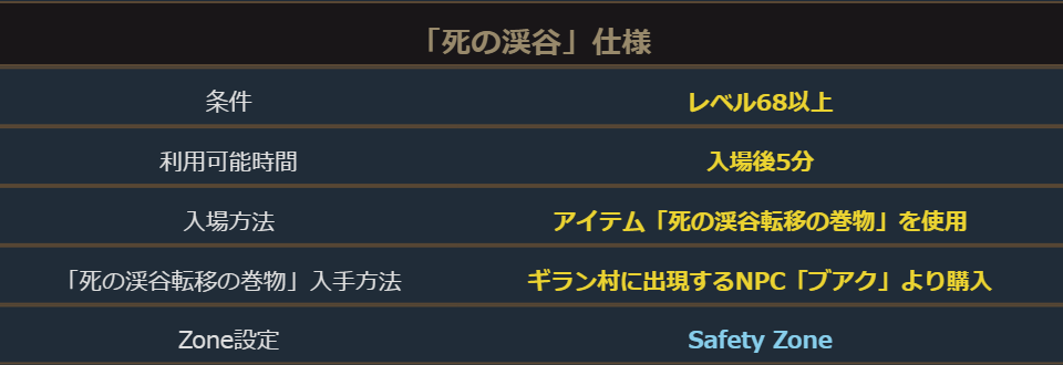 「死の渓谷」はレベル68以上のキャラクターが入場できるダンジョンになっています。