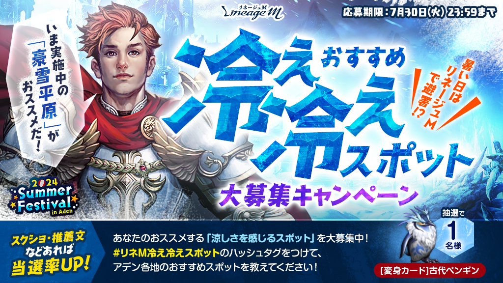 お問い合わせの際は冒頭に「暑い日はリネージュMで避暑⁉ おすすめ冷え冷えスポット大募集キャンペーン」と記載してください。