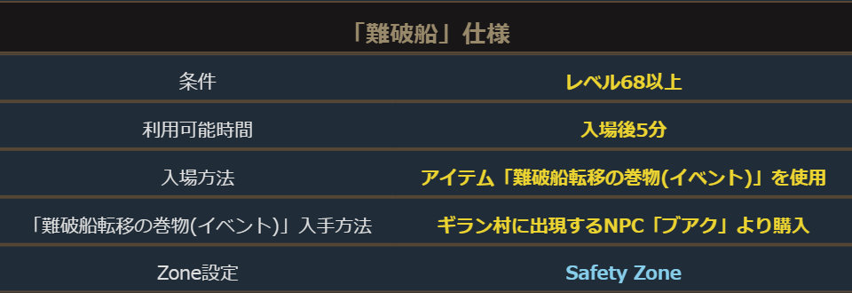 イベント期間中にアイテム「難破船転移の巻物(イベント)」を使用することで入場が可能です。