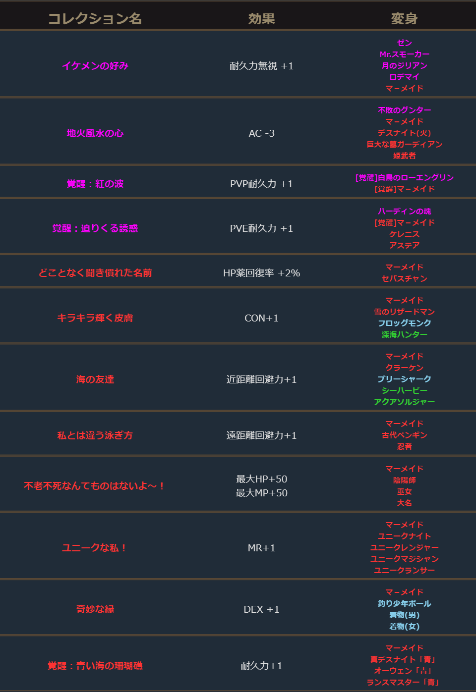 新規変身の追加に伴い、コレクションも新規に追加されました。