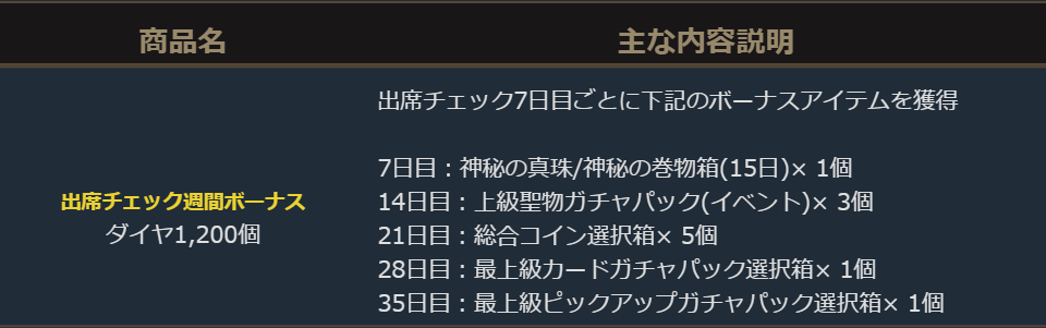 毎日受け取ることができる「出席報酬」の内容を更新いたしました。