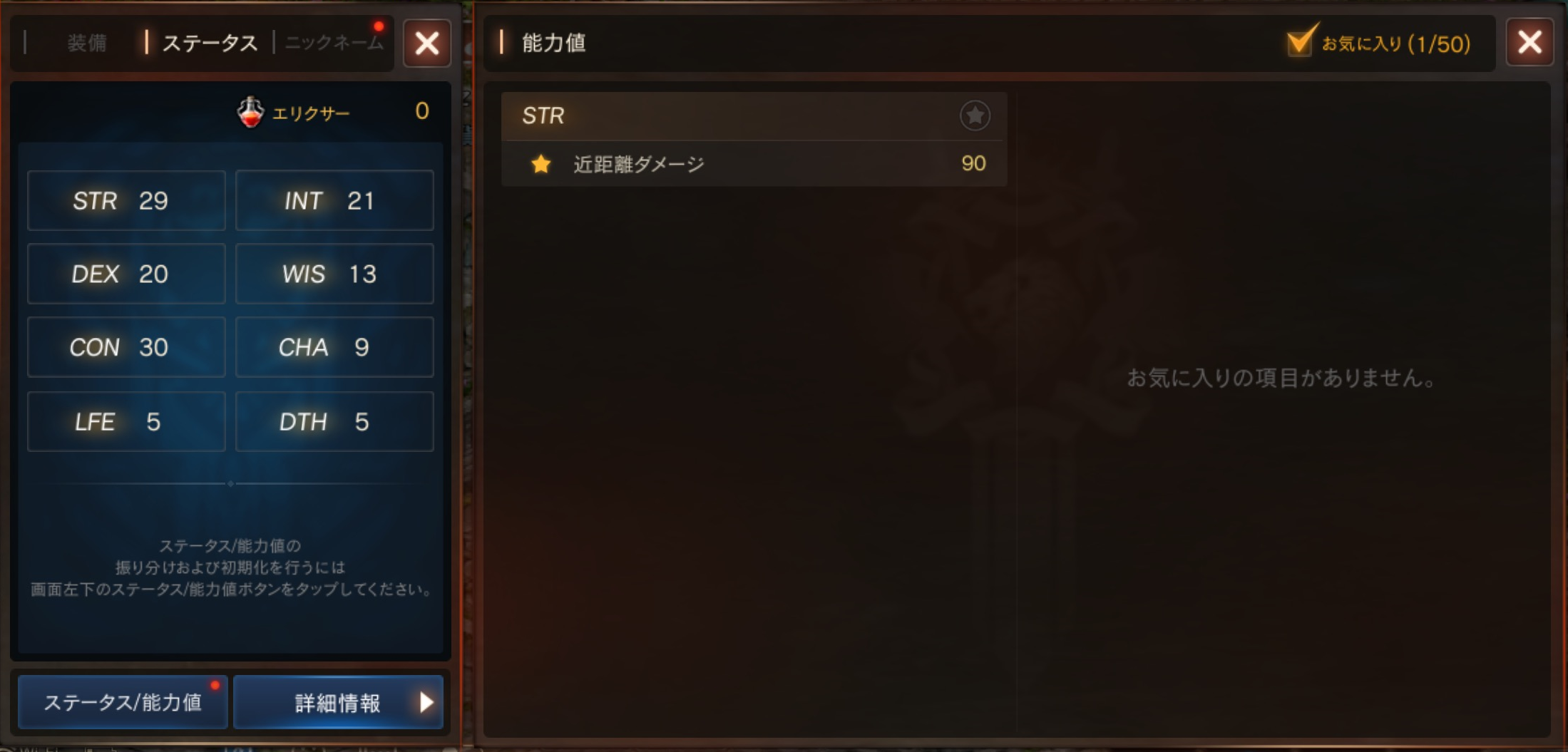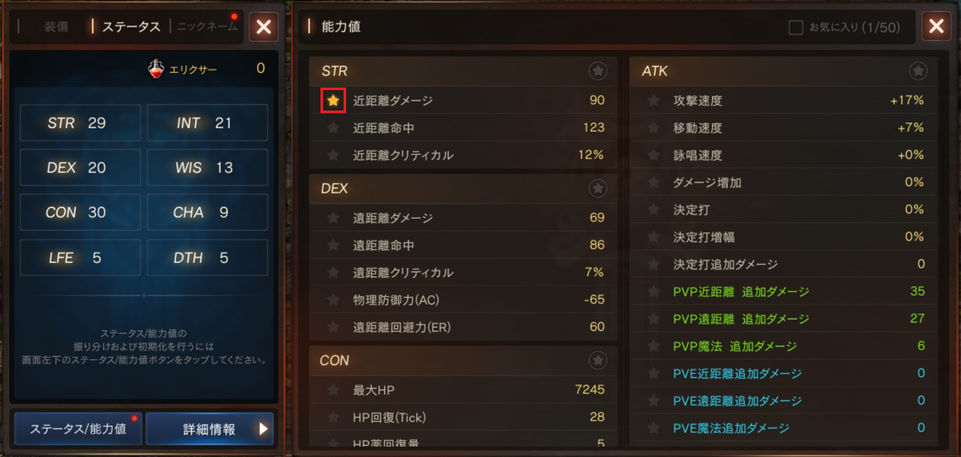 ステータスの詳細情報画面上で見たいステータスだけを表示できる「お気に入り機能」が追加されました。
