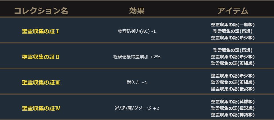 ▼新規アイテム「聖霊収集の証」関連コレクション