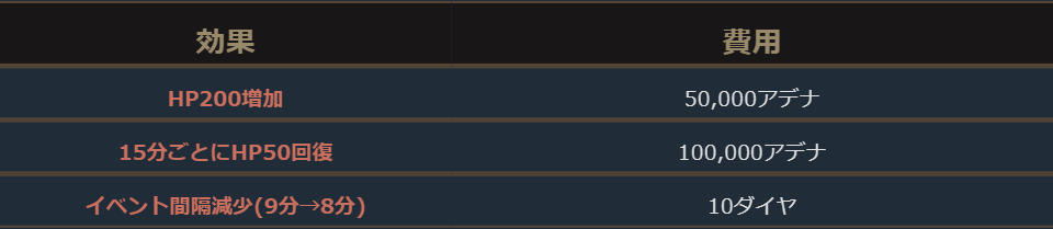 ※祭壇は最大5個まで同時に利用でき、一日に利用できるのは最大15回までとなります。