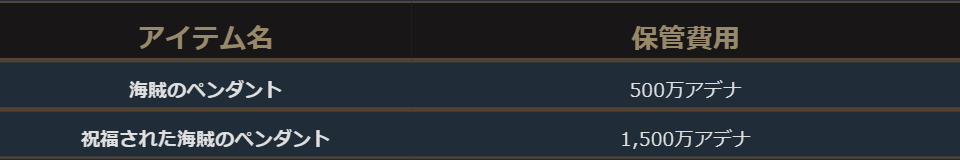 1.「海賊のペンダント」「祝福された海賊のペンダント」が倉庫保管可能となりました。