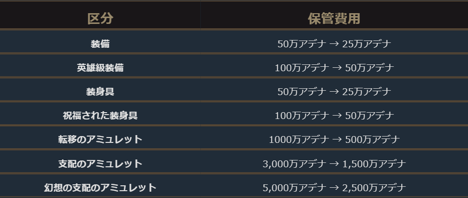 2.一部のショップ装備とアミュレット系アイテムの倉庫保管費用を調整しました。