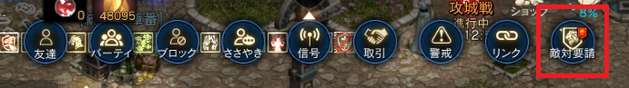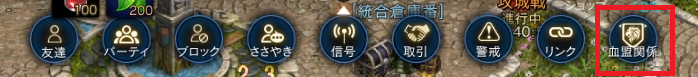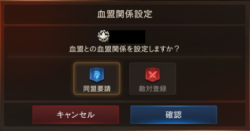 ※君主、守護騎士階級のキャラクターの場合は「血盟関係」ボタンに変化し、同盟要請と敵対登録が即時に可能です。