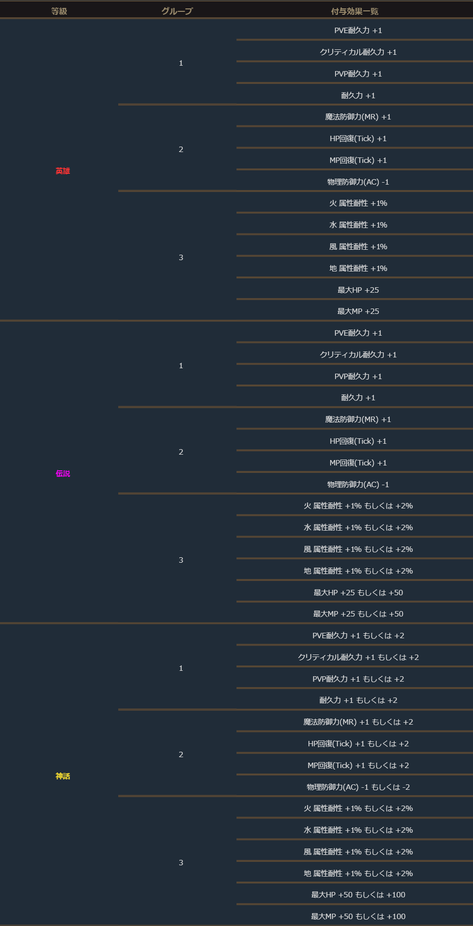 下記カテゴリの英雄級以上の防具に対して祝福細工が可能です。
