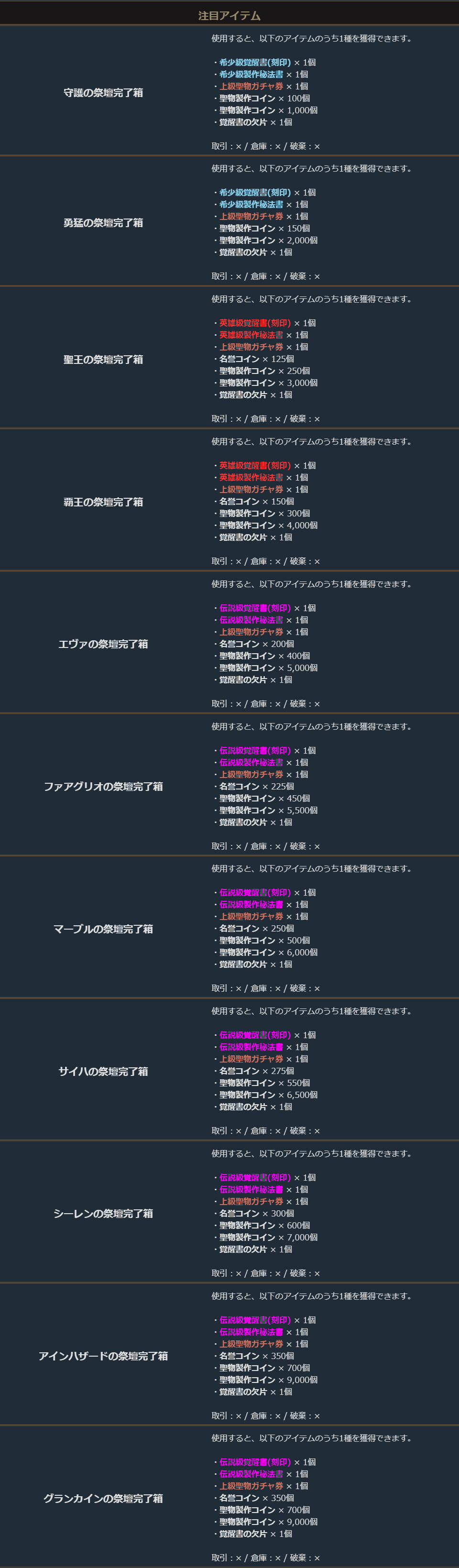 ※「★」マークが付いたアイテムは覚醒レベルがLv20に達した聖物で聖霊収集を行う場合のみ獲得が可能です。