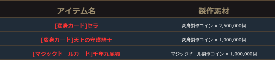 ・「黒魔術の結晶体(刻印)」「魔力石(刻印)」のアイテム重複と、自動購入数量が50万個に改善されました。