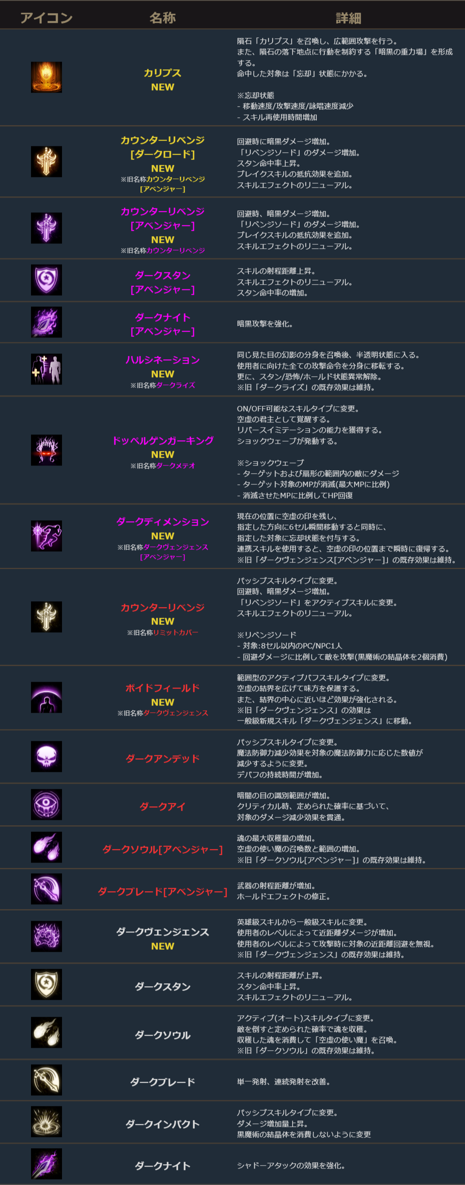 ・スキル「ダークミラー」「ダークミラー(アベンジャー)」が神聖剣士スキル「インカーネーション」の発動効果「懲罰」を反射する事が可能となりました。