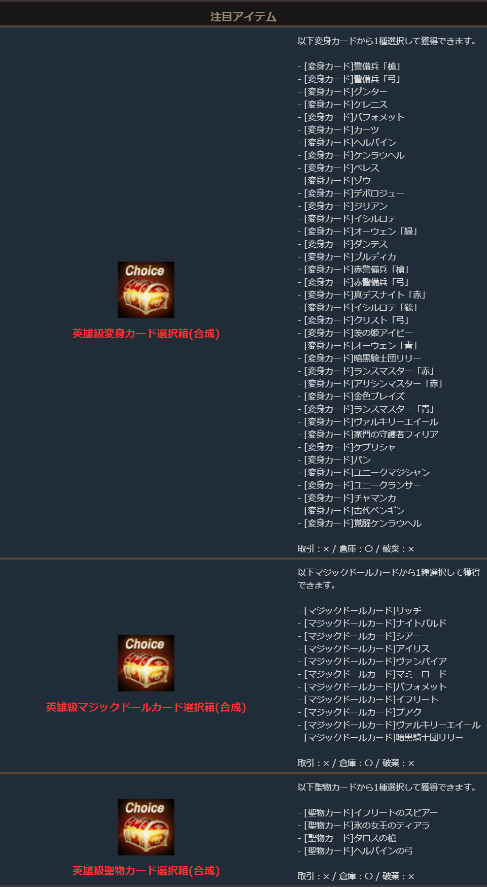 さらにそれぞれの「コイン補給箱」を8回購入することでアカウントごとに1回のみ対応した「英雄級カード選択箱」が購入可能になります。