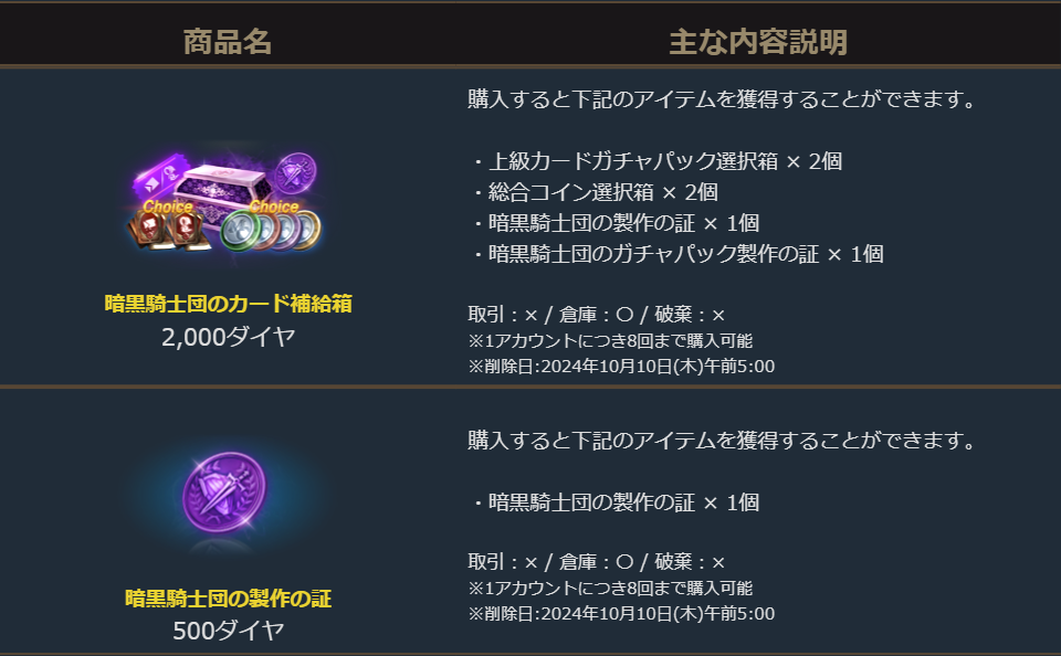 2024年9月19日より販売を開始しました「暗黒騎士団のカード補給箱」のご案内を申し上げます。
