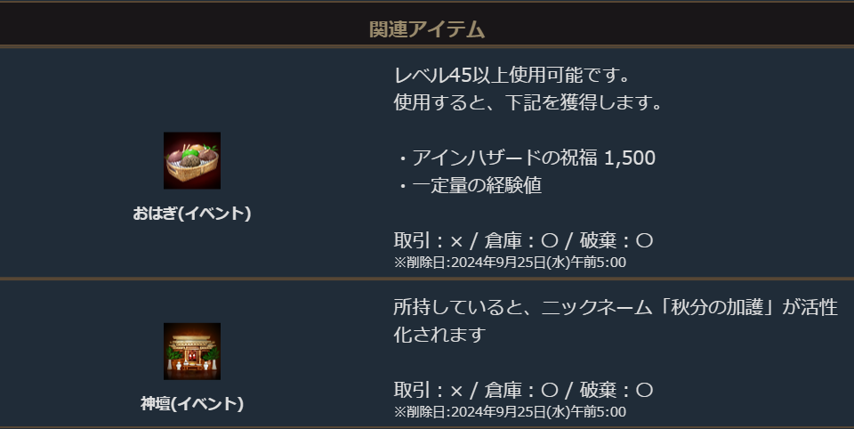 ※「神壇(イベント)」の受け取り期限は9月25日(水)定期メンテナンスまでとなります