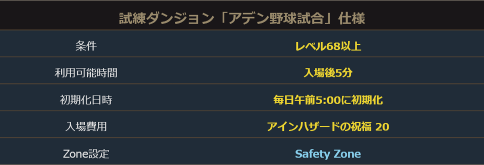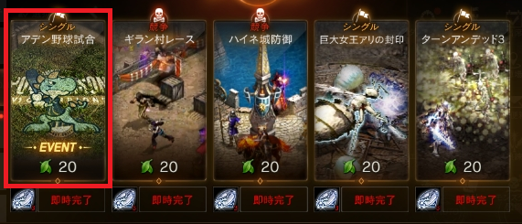 「アデン野球試合」はレベル68以上のキャラクターが入場できるダンジョンになっています。