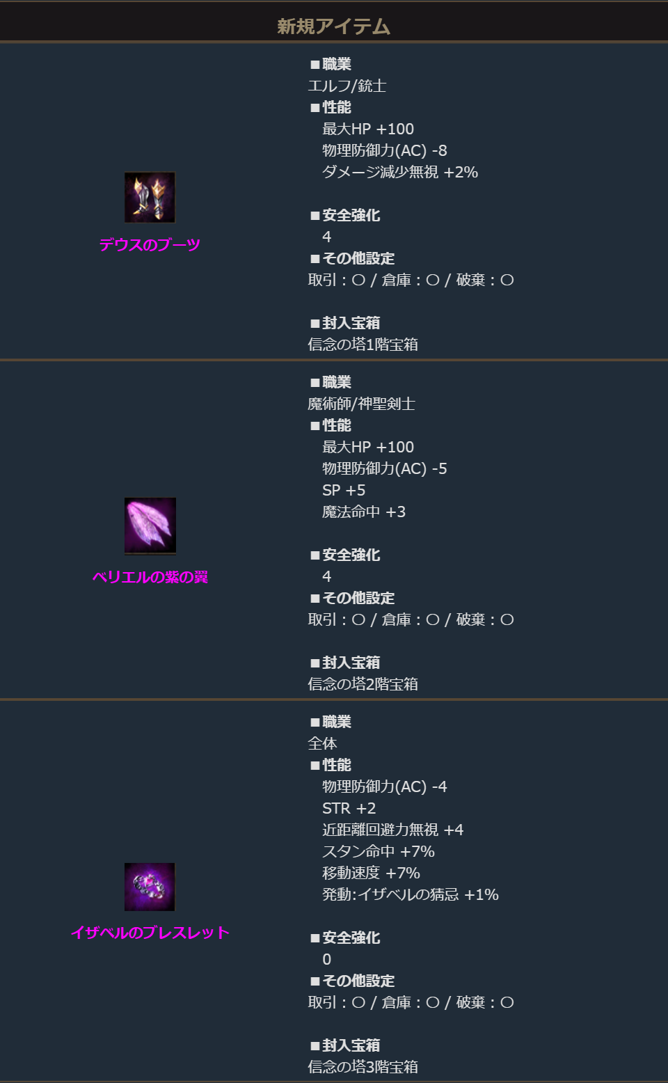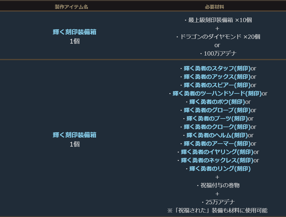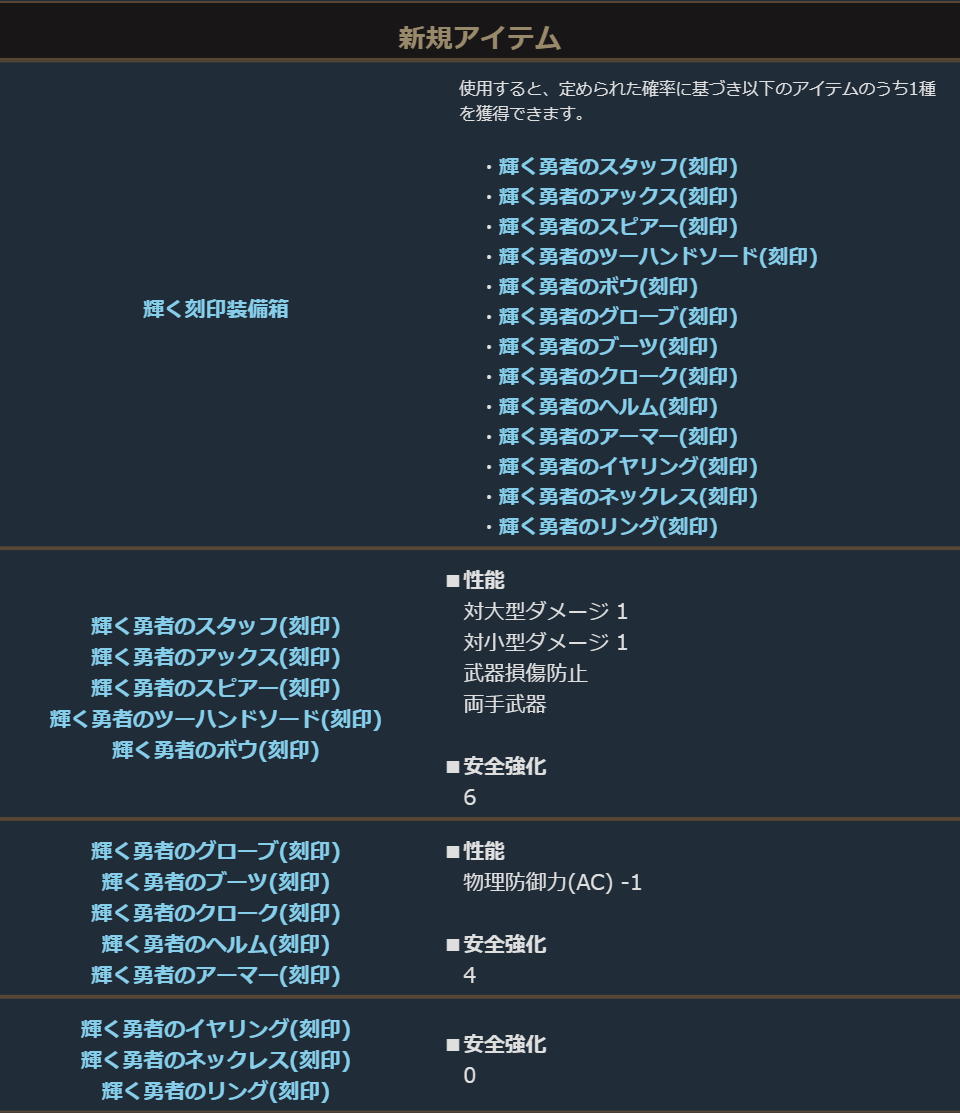 信念の塔の一般及びボスモンスターのドロップに「輝く刻印装備箱」が追加されました。