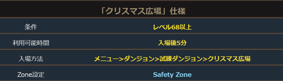 「クリスマス広場」はレベル68以上のキャラクターが入場できるダンジョンになっています。