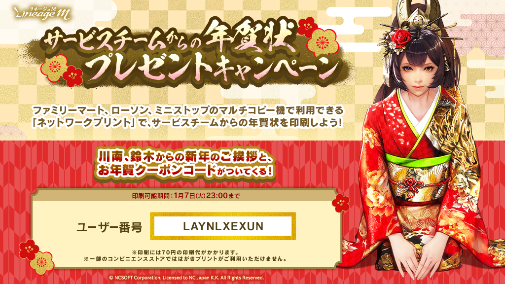 キャンペーン期間中に、全国の対象コンビニでサービスチームからの年賀状を印刷しよう!