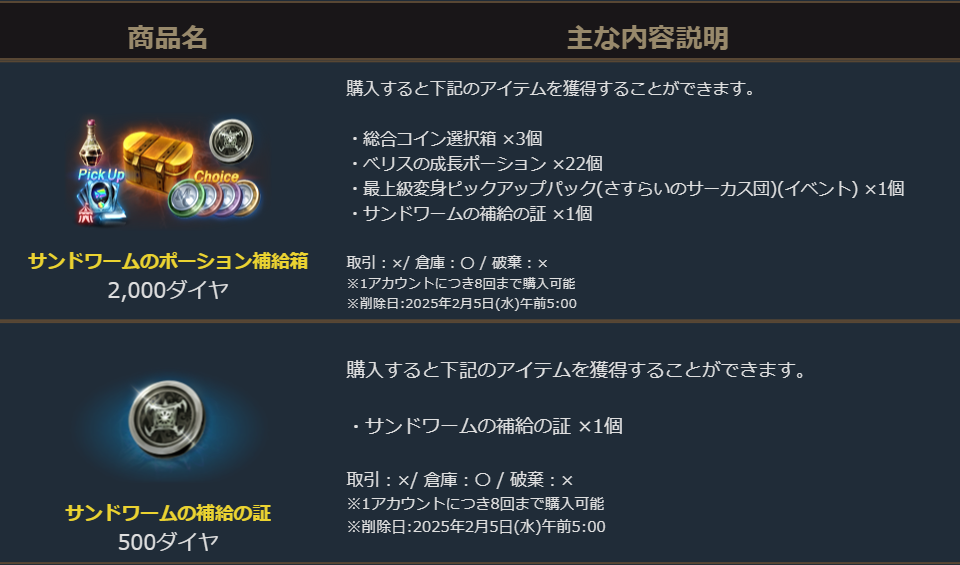 また、「サンドワームの補給の証」は個別で購入する事も可能となっております。