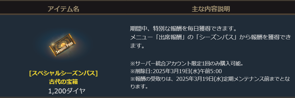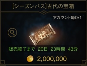 ・[スペシャルシーズンパス]古代の宝箱販売期間