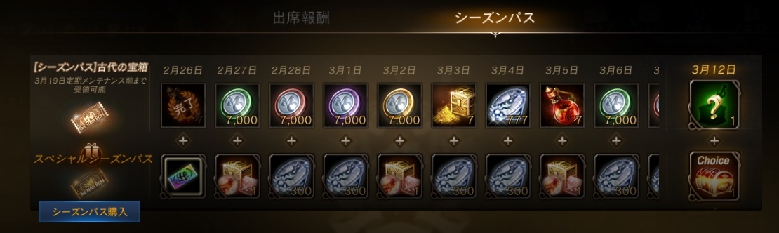 期間中、特別な報酬を毎日獲得可能になる「[シーズンパス]古代の宝箱」と「[スペシャルシーズンパス]古代の宝箱」が販売されます。