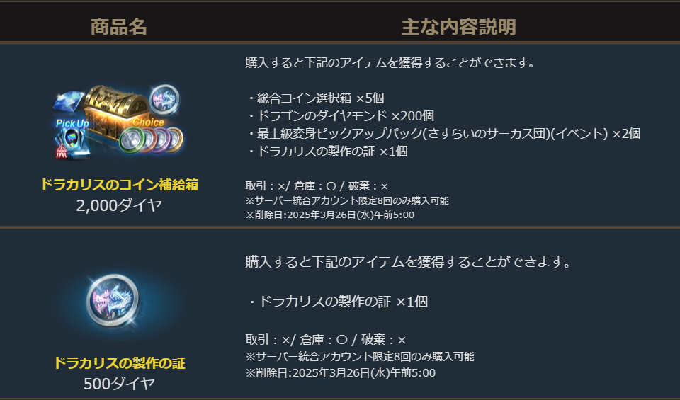 2025年3月5日より販売を開始しました「ドラカリスのコイン補給箱」のご案内を申し上げます。