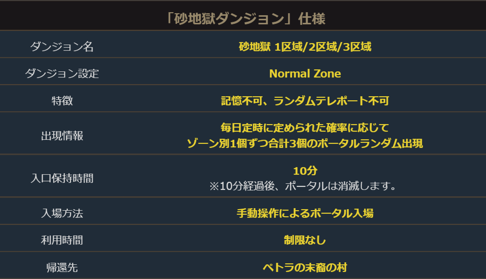 ペトラ砂漠にランダムに出現するポータルから「砂地獄ダンジョン」に入場する事ができます。
