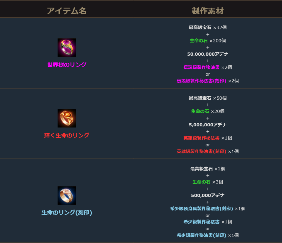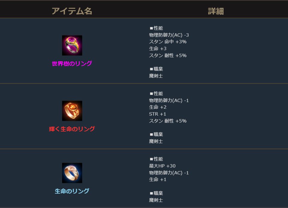 魔剣士のみ装備可能な新規リングと製作を追加しました。
