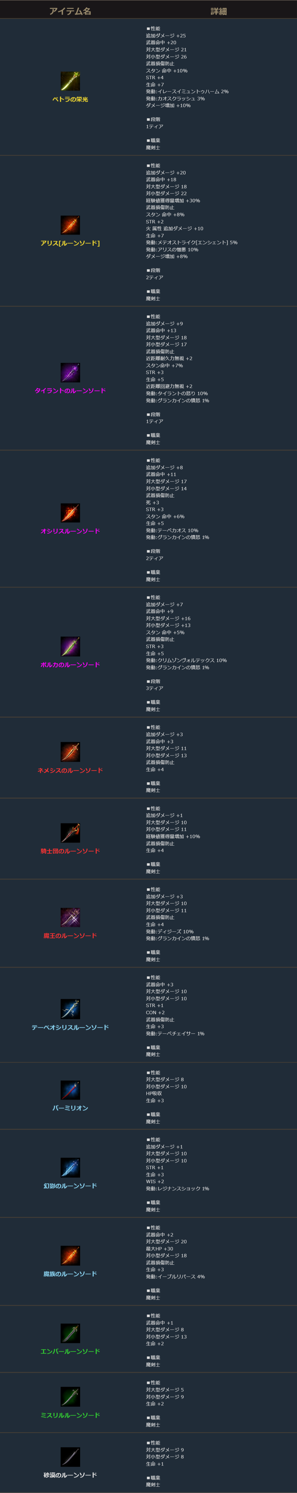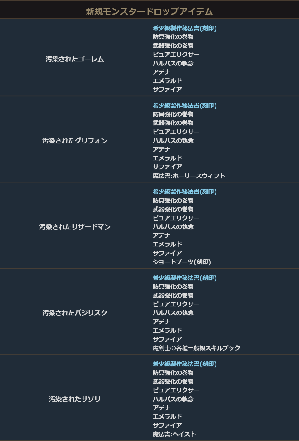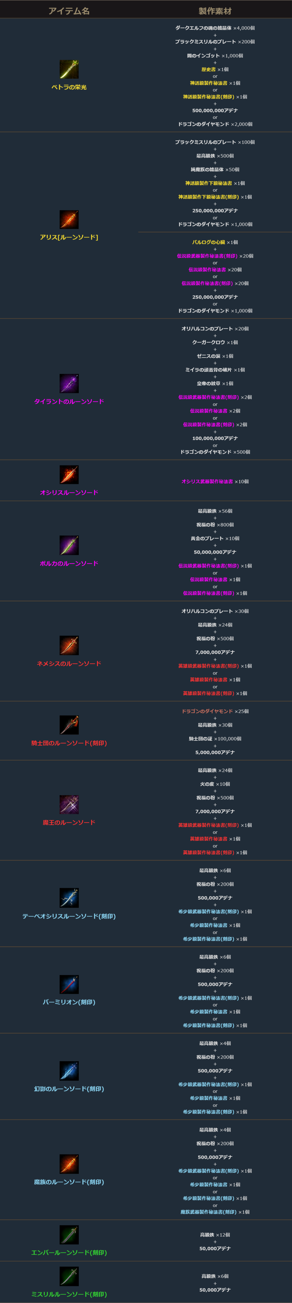 ・「混沌/秩序の錬金術」の錬金材料および結果物に魔剣士の関連アイテムを追加しました。
