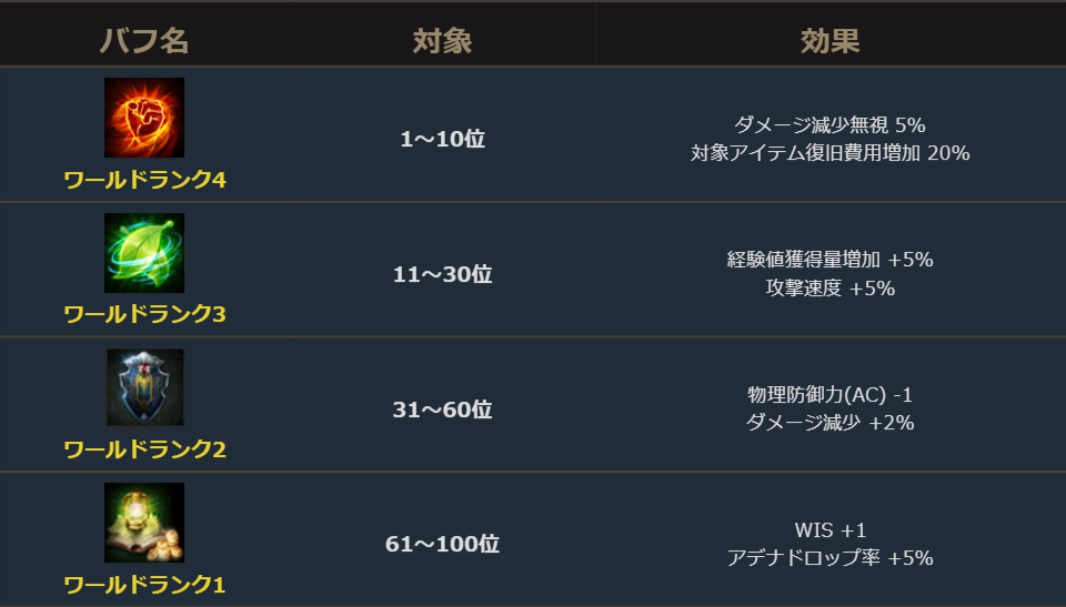 ※ワールドランキングはサーバーランキングと同様、毎日5時に更新されます。