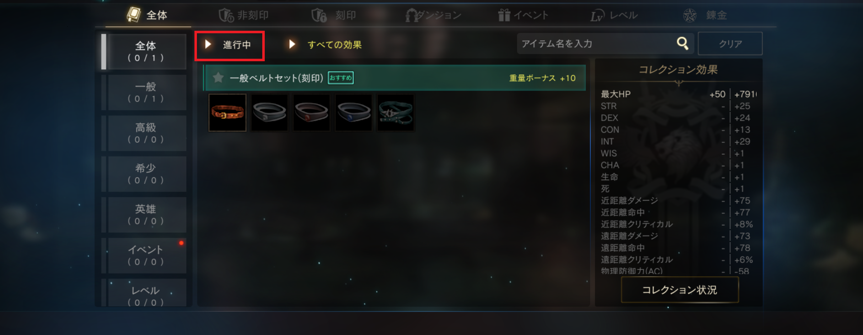 アイテムコレクションが未完成で材料が1つ以上登録されているコレクションのみを表示する「進行中」フィルタを追加しました。