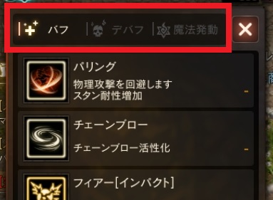 ・バフ情報欄にバフ/デバフ/魔法発動の3つのタブで表示するよう改善しました。