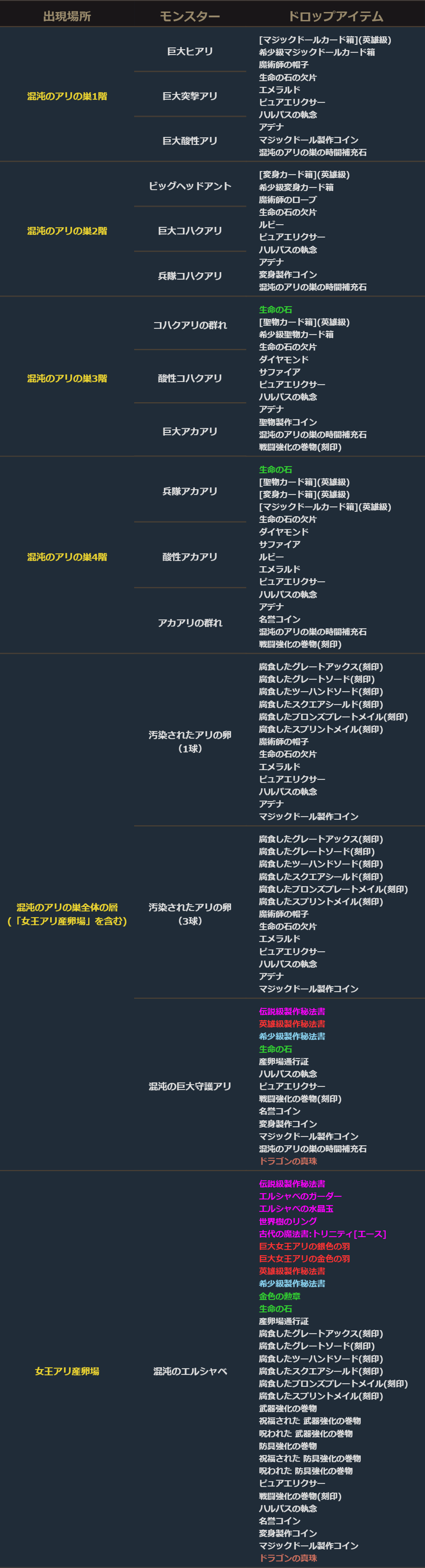 ※「女王アリの怒り」ゲージは毎週水曜日午前5:00に初期化されます。