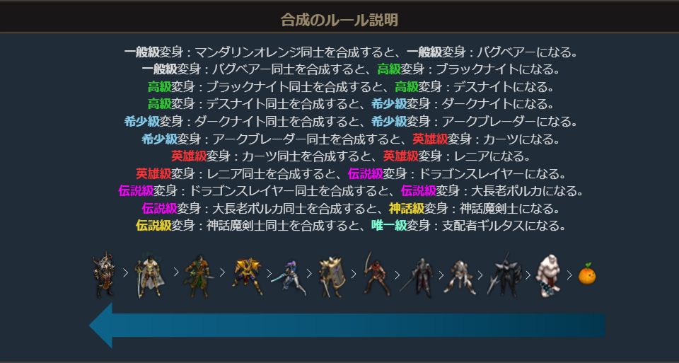 変身合成ゲームに挑戦し、神話級変身「神話魔剣士」の合成を目指しましょう。