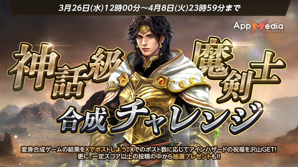 2025年3月26日(水)より攻略wiki「AppMedia」とのコラボレーションイベントとして「神話級魔剣士合成チャレンジ」を開催いたします。