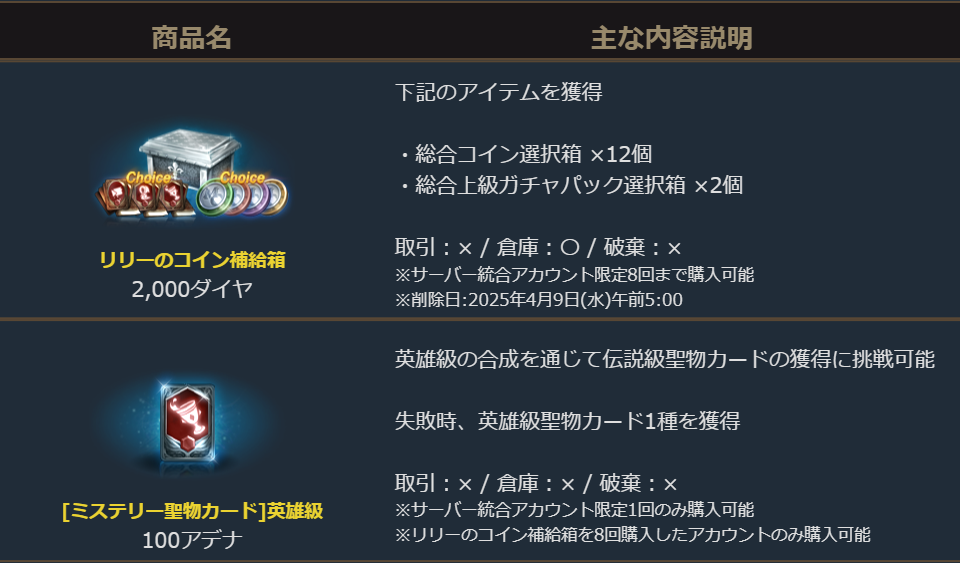 販売期間:2025年3月26日(水)定期メンテナンス後~2025年4月2日(水)定期メンテナンス前まで