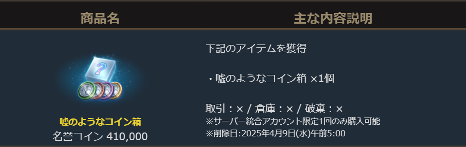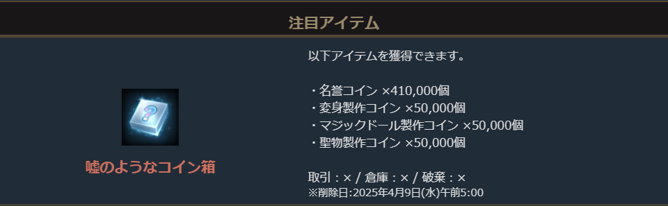 4月1日限定で各種コインが獲得できる「嘘のようなコイン箱」が交換できるイベントを開催いたします。