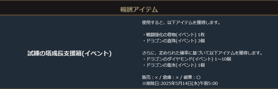 「試練の塔」攻略の際のみ使用可能な強力なバフになりますのでぜひ活用してください。